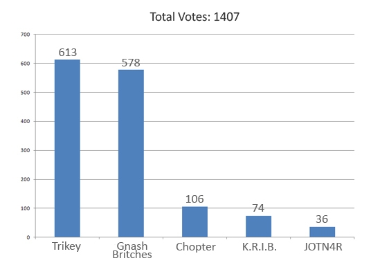 The Design Many Robots contest has come to a close, and Trikey is the winner! It was a close race between Trikey and Gnash Britches, but Trikey came out on top. Here are the totals (combined from both polling systems) for each robot design: