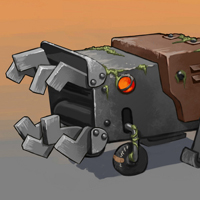 A boxy robot with a fierce temper. When spotting an enemy his engine starts up, then he is propelled towards said enemy; all while his teeth mash independently. If he reaches an enemy, Gnash bites quickly then latches onto the player’s leg.
