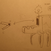 Trikey is also a natural born leader, tending to command packs of tankbots as a secondary attack. While powering up for his concealed attack, Trikey is known to rise up on his hind legs, allowing the pack of tankbots to run underneath towards an unsuspecting player, as indicated in the diagram. When the player finally get’s an upper hand, Trikey will resort to his concealed mortar launcher. Although he carries only one charge, he is able to deliver a “botload” of damage to unsuspecting tutu wearing, beer drinking players.