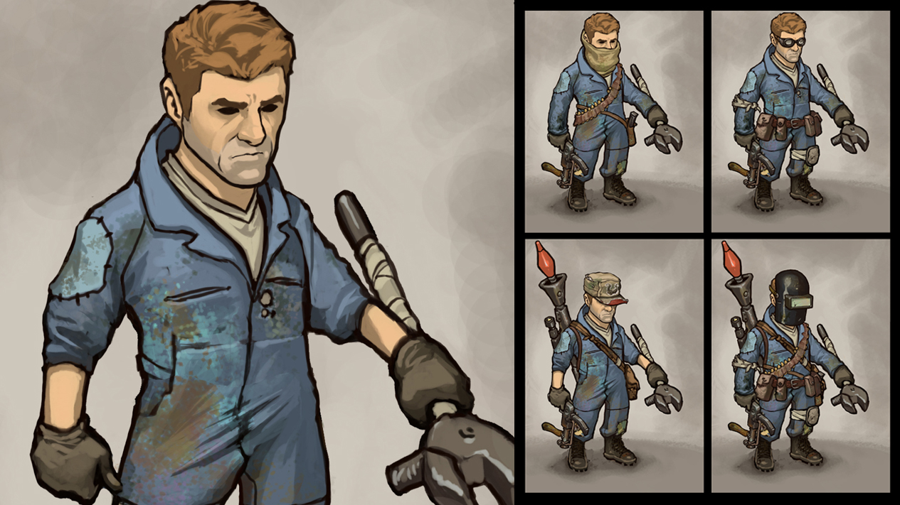 Von da an arbeiteten wir einen Mechaniker-Charakter aus. Ein einfacher Typ, der gern an Maschinen herumbastelte und Waffen baute. Zu dem Zeitpunkt führten wir auch das Konzept ein, sämtliche Ausrüstung des Avatars aus ästhetischen Gesichtspunkten zu ändern, aber auch, um seine Fähigkeiten und Statistiken zu beeinflussen.